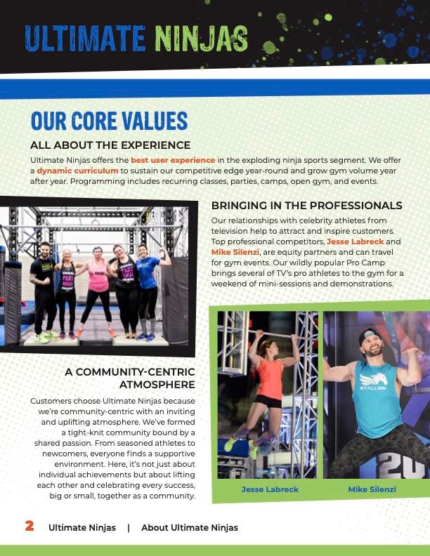 I teamed up with a designer who understood the complexity of the audience and the importance of balance. Together, we created a short, dynamic booklet that spoke to all three groups. The copy laid out the gym’s multi-layered business model in a way that felt inspiring, trustworthy, and just a little bit badass. The design elevated the message with a sharp, modern look that avoided anything too cutesy while still being kid-friendly.